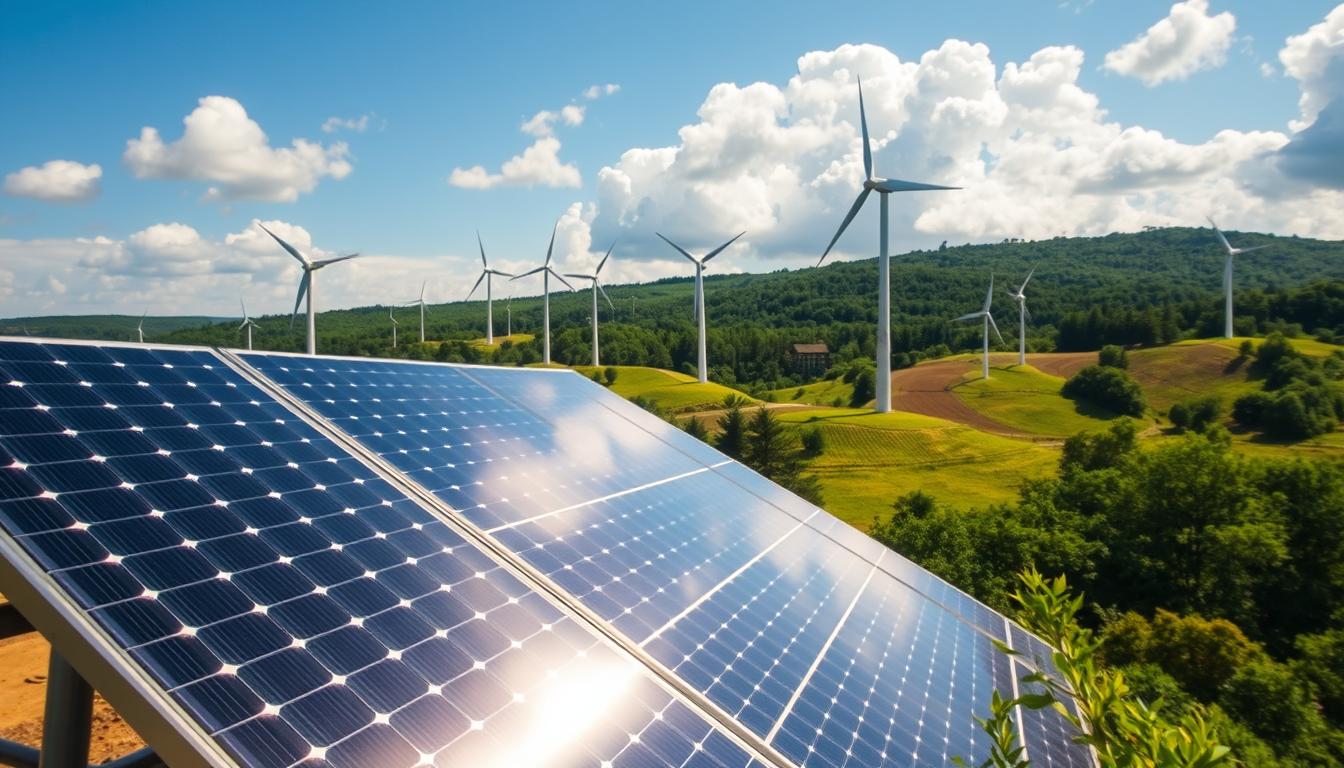 Renewable energy is key to a sustainable future. It uses natural resources like sunlight, wind, and heat from the Earth. This helps us move away from fossil fuels and towards a greener energy world.