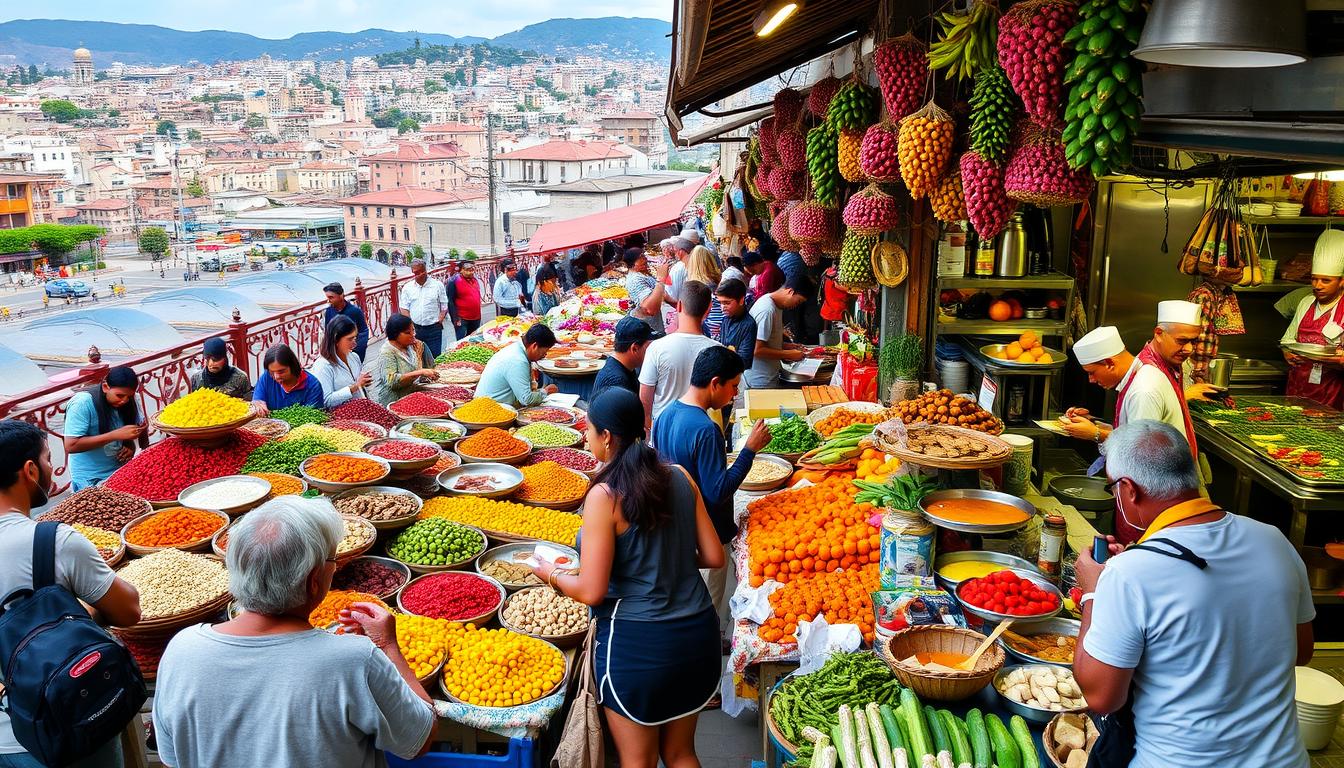 Exploring local food markets is a fantastic way to taste a city’s true flavors. These lively markets offer a mix of traditional street food and modern dishes. It’s important to be adventurous and open to new tastes and ingredients when on street food adventures.
