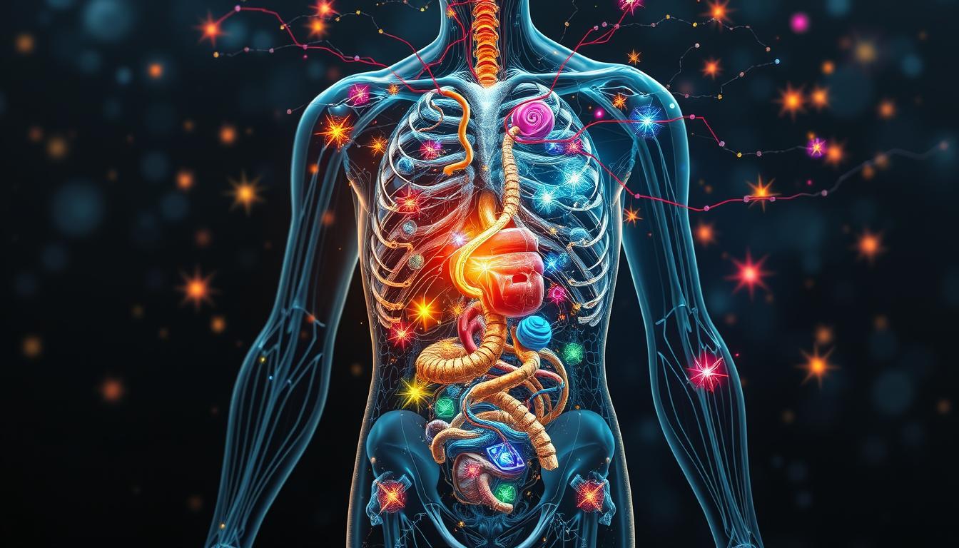 At the heart of this wonder are trillions of cells. These tiny units are always busy with chemical reactions. They process nutrients, make energy, and talk to each other to keep us alive.
